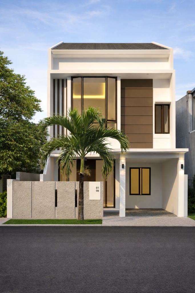 Desain rumah dibuat mengikuti gaya hidup pemilik, sehingga setiap ruang memiliki fungsi yang jelas. Selain itu, penggunaan garis tegas dan warna netral memberikan kesan bersih dan elegan.